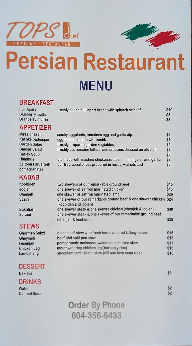 Start your day with a delightful Pull Apart or a sweet Blueberry Muffin. For a light bite, the Mirza Ghasemi and Kashke Bademjan appetizers are perfect. The Caesar Salad and Barley Soup add a refreshing touch, while the Hummus and Zeitoon Parvardeh offer a taste of the Mediterranean.